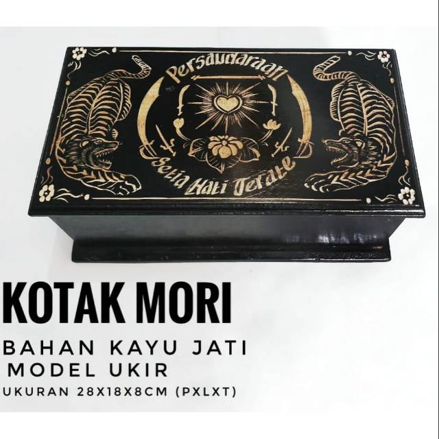 Menyediakan kotak mori psht ukir berkualitas. Bahan dari kayu jati. Untuk pemesanan lakukan konfirmasi ketersediaan barang dan motif. Khusus warga