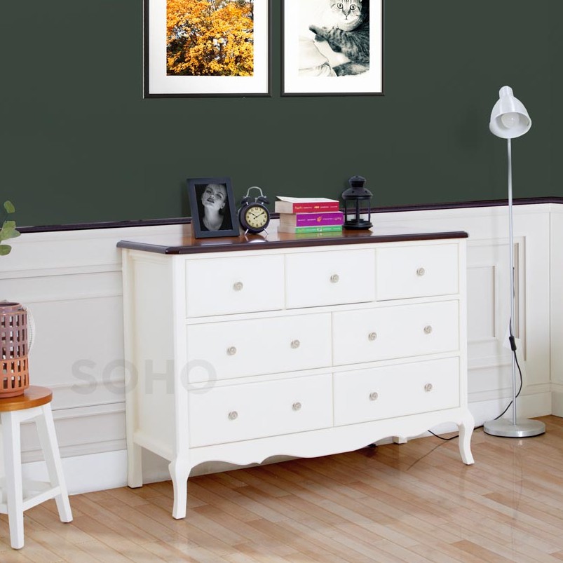 Lemari penyimpanan berbentuk wide chest dengan nuansa classic modern. Sangat cocok untuk Anda yang menyukai sentuhan classic di hunian Anda. Terdapat tujuh laci yang menggunakan rel besi, sehingga mudah dibuka dan tahan lama. Dapat digunakan juga sebagai sideboard. Dikirim jadi, tanpa perakitan.P: 115 cmL: 45 cmT: 85 cmBahan: rangka kayu solid mahoni, papan mdf dan finishing cat ducoSelalu tanyakan ketersediaan stok sebelum transaksi, karena stok kami berjalan.Catatan Sebelum Membeli:1. Pengiriman ke Bandung & Jabodetabek hanya dikenakan ongkir 1kg via JNE/J&T/SiCepat.2. Pelanggan di luar Bandung & Jabodetabek, dikenakan ongkir tambahan karena akan dikirim via cargo. Silahkan chat untuk cek ongkir.3. Kami hanya akan mengirimkan catatan / faktur melalui JNE/J&T/SiCepat dsb.4. Barang fisik dikirim menggunakan kendaraan toko atau kargo lain - lebih murah (untuk luar Jabodetabek Bandung) dan aman.5. Resi diinfokan 2 – 3 hari kerja setelahnya, jika barang ready.6. Jika ada komplain, langsung hubungi customer service Soho Furniture (09.00-18.00). Lebih fast response dan pasti puas. Komplain / reputasi buruk via Shopee akan menghambat proses klaim dan transaksi dianggap selesai.7. Barang yang dijual adalah yang sesuai dengan nama dan deskripsi barang. Barang lain yang tampak di foto yang tidak sesuai dengan nama dan deskripsi hanyalah properti foto saja, tidak termasuk barang yang dijual.Saat Menerima Barang / Syarat Ketentuan Klaim:1. Foto packing barang paling sedikit dari dua sisi.2. Jika ada cacat / komplain, foto bagian yang rusak dengan penjelasan rinci.3. Kirim ke CS Soho Furniture.4. Batas waktu klaim adalah 2 hari setelah barang fisik diterima.5. SOHO berhak menerima / menolak komplain yang diajukan jika tidak termasuk barang cacat.Dengan membeli barang ini, Anda menyetujui syarat di atas.Showroom: SOHO Furniture Store, Jl Ibrahim Adjie no 423 Bandung.Google: Soho Furniture store Ba