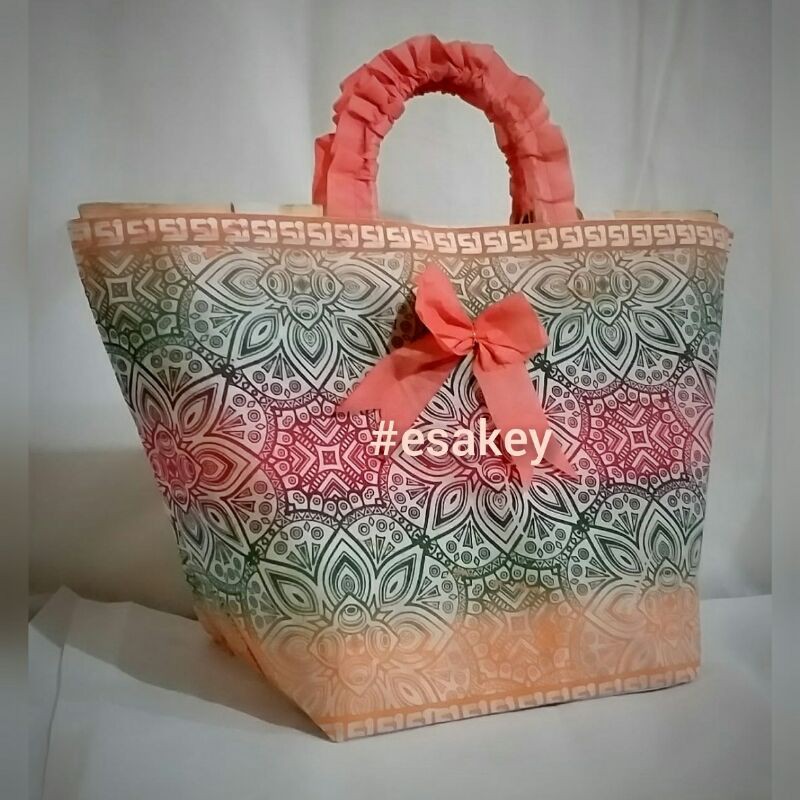 Ready StockTas hajatan bernuansa batik nusantara penuh warna cerah + assesoris pita yang memberi kesan elegan serta mewahDari bahan spundbond berkualitas, tebal dan kuat Muat untuk nasi kotak ukuran 22Variasi corak warna koleksi kita banyak yaHarga diatas adalah harga per pcs dan tidak ada batas minimal order ya (boleh beli 1pcs atau lebih)Sangat cocok untuk acara resmi seperti hajatan, walimah, yasinan,akikah, arisan,dllUkuran tas : Panjang 22cmLebar 22cmTinggi 30cmSilahkan diorder kakakTerimaka
