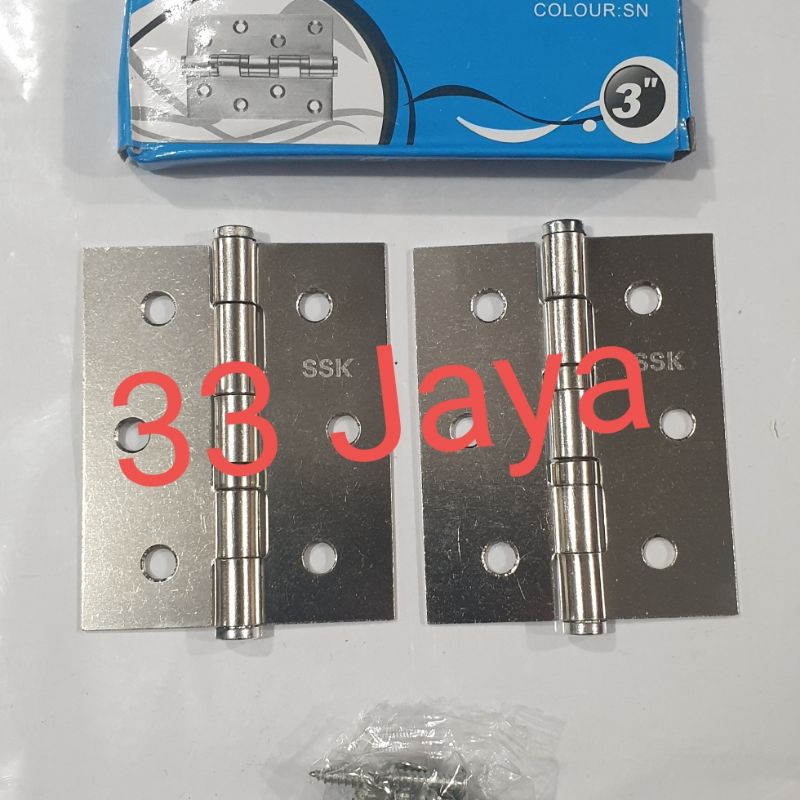 Engsel Pintu merk SSKukuran 3 " x 2.5 x 1.3 mmukuran 4 " x 3 x 1.3 mmpilih varian yg dibutuh