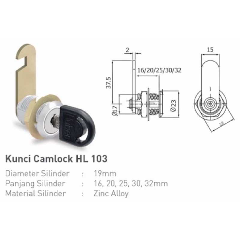 Kunci Loker Huben Cam LockKode : HL103Ukuran : 20mm, 25mm, 30mmDigunakan untuk pintu buka