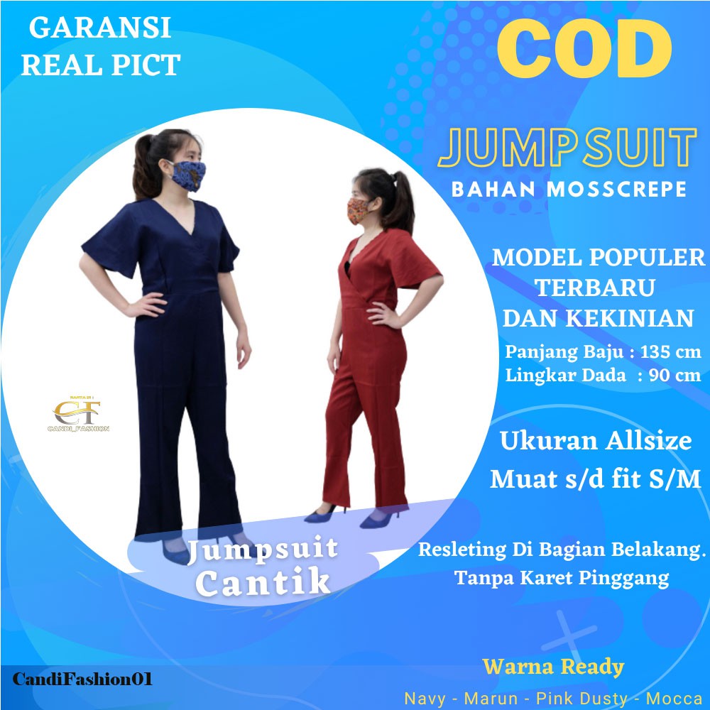 Jumpsuit bahan mosscrepe.Model populer dengan banyak repat order.Panjang Baju: 135Lingkar Dada: 90Resleting di bagian belakang. Tanpa karet pinggang.Ukuran allsize, muat s/d fit S/M.Warna ready: navy, marun, pink dusty, moccaProduk aktif di etalase = ready.Namun sangat disarankan untuk menanyakan stok terlebih da