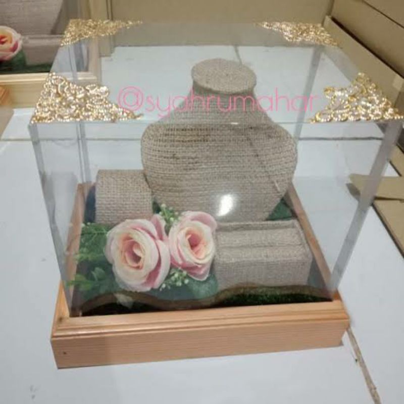 box kayu ukuran 20x20sudah berserta mika untuk tempat kalung,cincin,gelang,anting*TIDAK BISA SAMA PERSIS DGN GAMBAR* hiasan bisa beda menyesuaikan stock yg ada* proses pembuatan 2-3 hari . * kerusakan saat pengiriman bukan tanggungjwb kami . krna kami sudh packing dgn bublle wrap dan ka